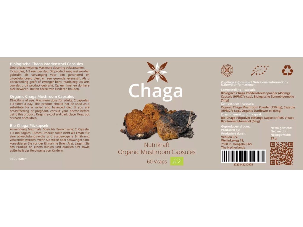 Zloženie: Prášok z huby chaga – ryšavec šikmý (Inonotus obliquus), kapsula (hydroxypropylmetylcelulóza), slnečnicový olej.
